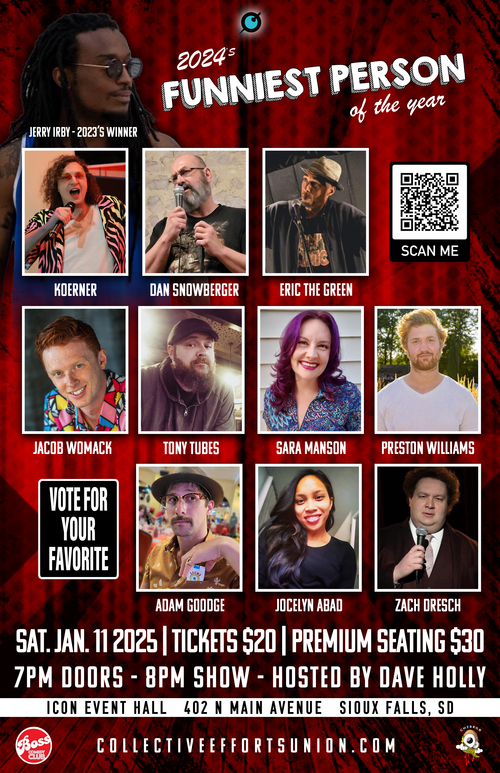 Dave hosts a local podcast about Sioux Empire Arts & Entertainment and has had several comics on the show. He also cohosts and coproduces a Variety how called The Vaudies—Modern-Day Vaudeville where each show has a different cast but always includes a comic. He’s a comedy lover & supporter with over 20 years of Improv experience, he’s also dabbled in standup by hosting, opening and featuring.