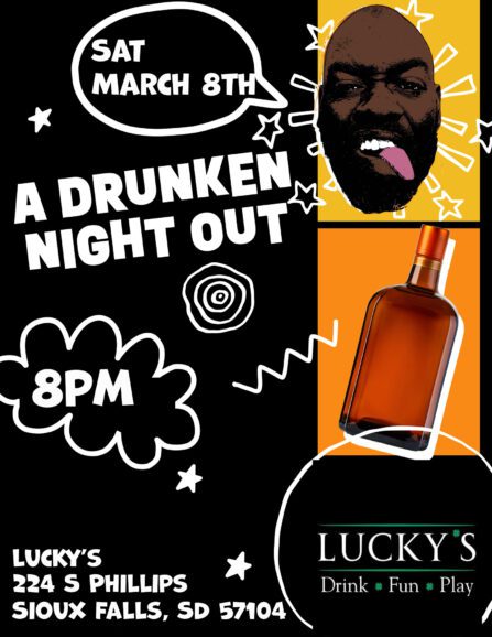 drink of choice and then they perform a set not so sober, with a catch; you the audience decide what the comics drunkenly joke about.