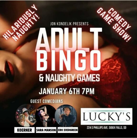 YOU LOVE IT! Adult Bingo & Naughty Games is coming to Sioux Falls, SD and Bingo Daddy/Comedian, Jon Kondelik, is bringing some Guest Comedians with him!