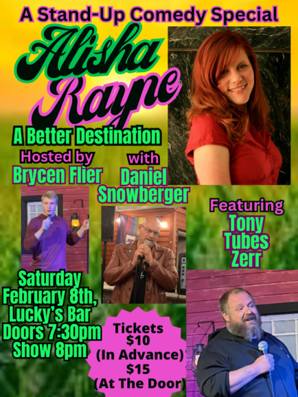Saturday, February 8th will be the taping of Alisha Rayne’s Comedy Special: A Better Destination. Alisha Rayne is a stand-up comedian and writer.