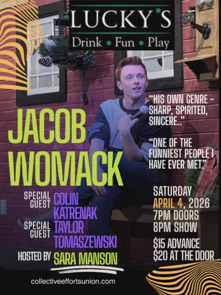 Jacob Womack has been entertaining a variety of audiences for nearly fifteen years. In 2025, he won the annual “Funniest Comic in Sioux Falls” contest, as well as “Best Stand-up Comic” at the Sioux Falls Stage Awards. On top of comedy, he is a performer for two improv companies in the Sioux Falls area, as well as a DJ and MC. He has won two national championships for public speaking, and he played the title character in the 2017 short film “Duffy’s Jacket” alongside character actor Doug Jones. His deeply personal comedy recounts the experience of being an adult with autism, a teacher, and an entertainer on a lifelong journey to figure out what exactly “be yourself” means.