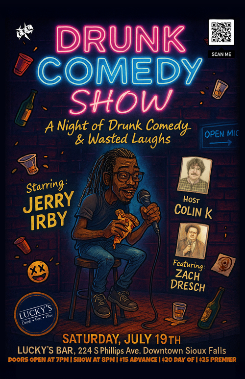 Zach Dresch is a stand up comedian perhaps best known for his role as the Flu Bug in SD Dept. of Health commercials. He is a member of the improvisational troupe Improv Falls, as well as the drummer for many different groups including the Disarmed, Aliens Do Exist, the dueling pianos group Duel Purpose and way too many other bands to mention. He most recently won Sioux Falls’ Last Comic Standing last year, and can be seen performing regularly around the Midwest.